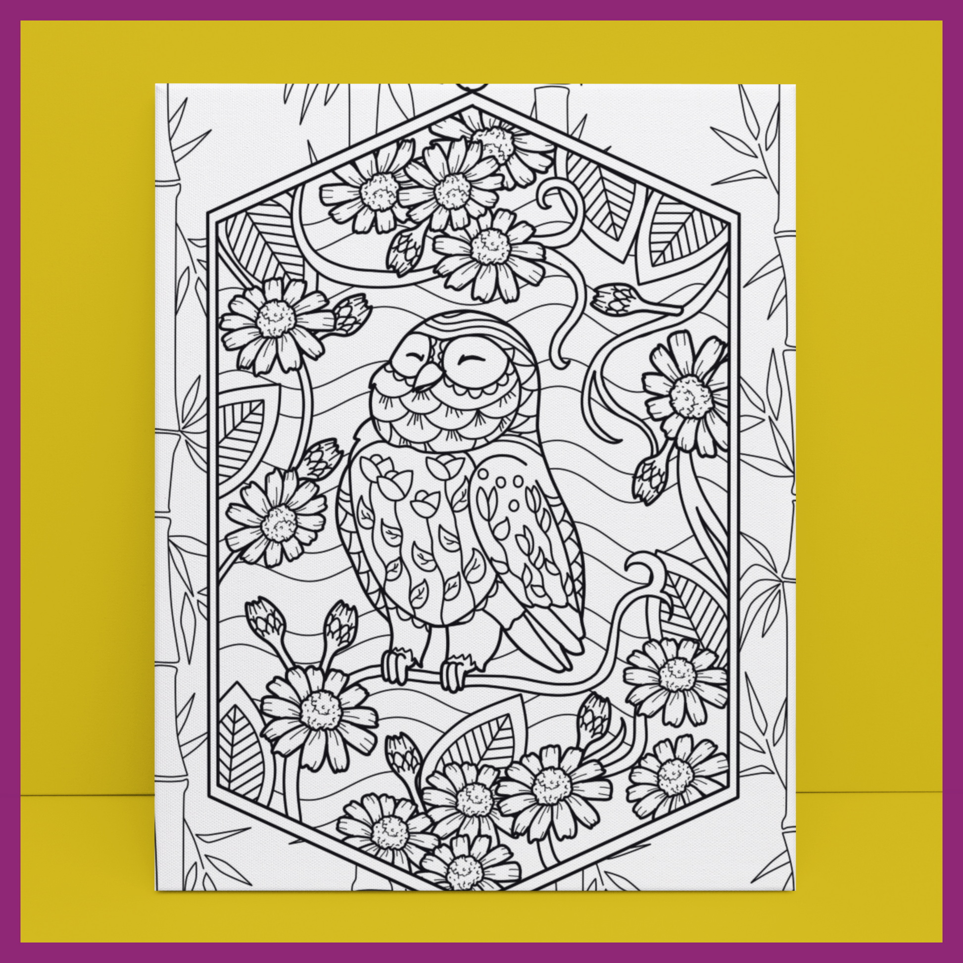 A happy little owl is featured on this cotton panel canvas for you to paint!