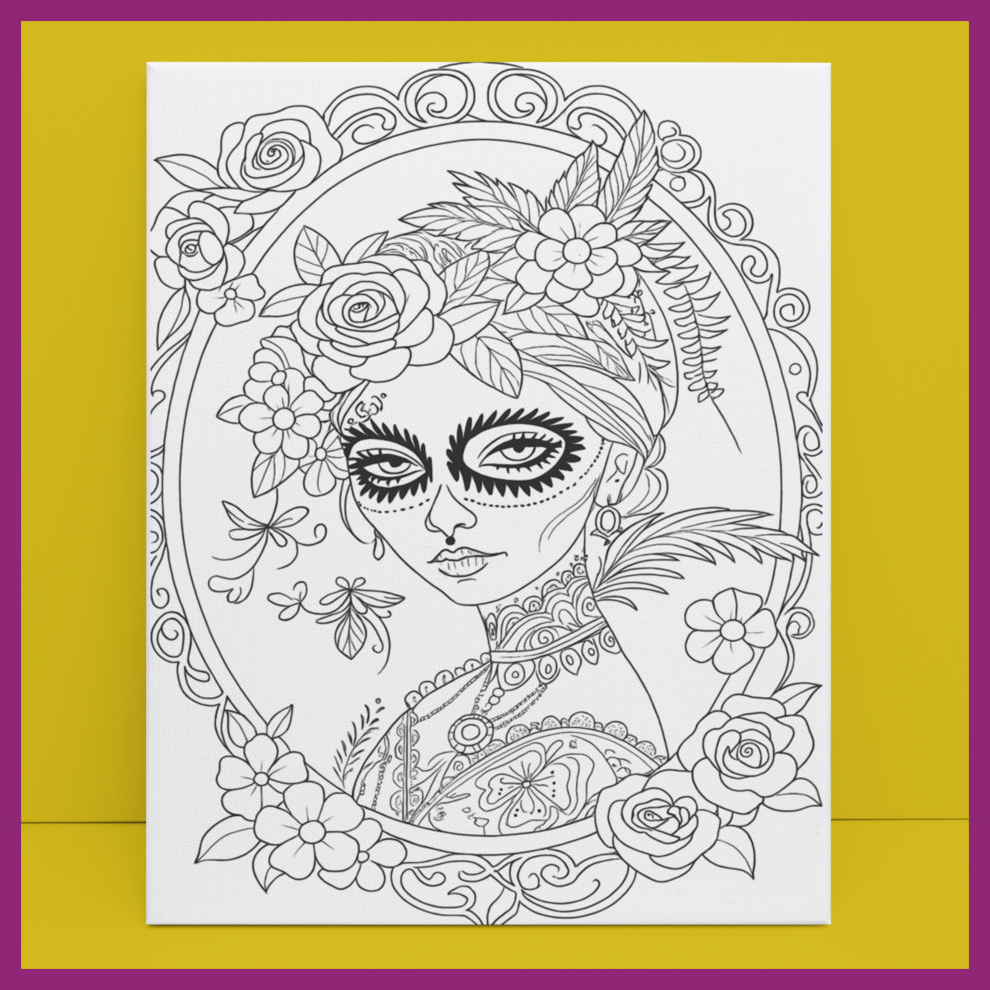 DIA DE LOS MUERTOS LADY PREDRAWN CANVAS