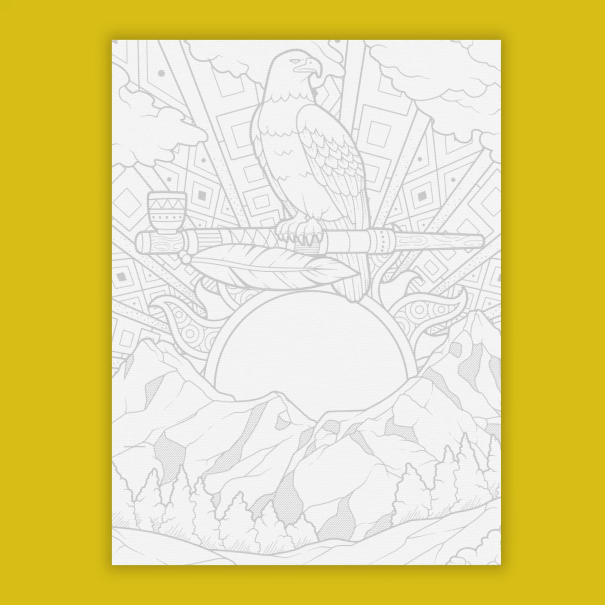A handsome bird sitting on a peace pipe is featured on this cotton panel canvas for you to paint!