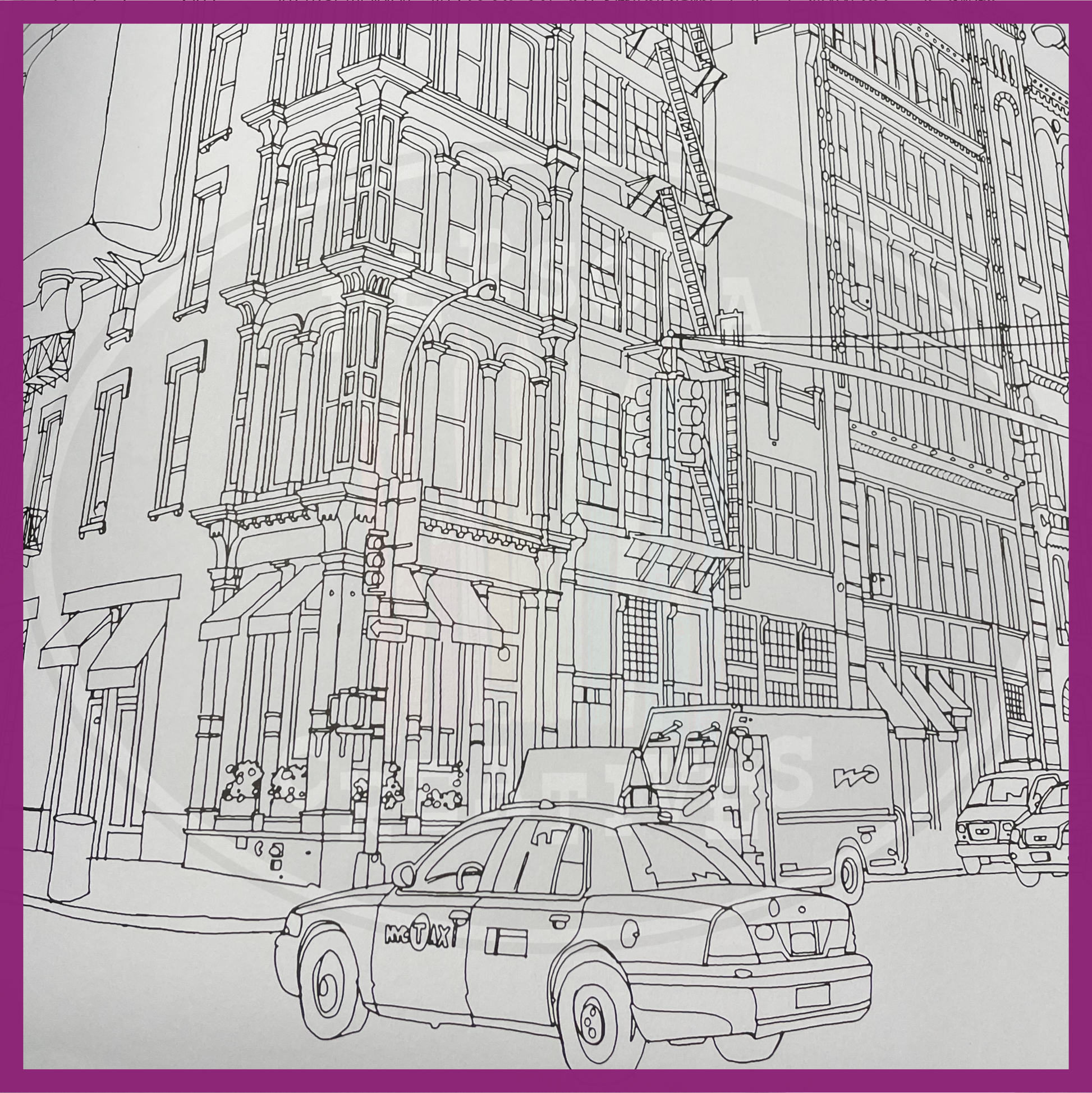 Complementing the cityscapes are a selection of mind-bending labyrinthine architectural illustrations for still deeper meditative coloring adventures and imaginative flights of fancy.