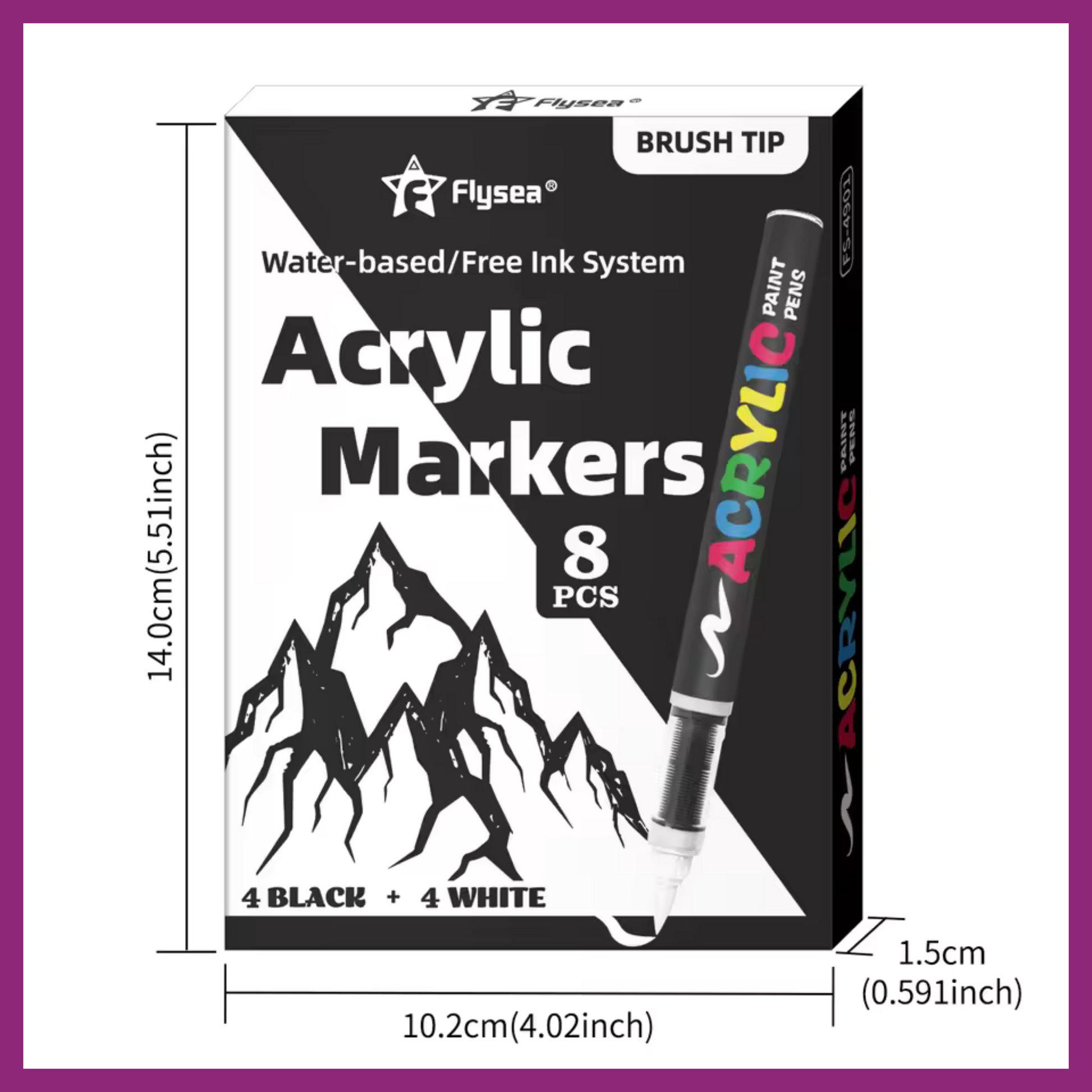Flysea 8 Acrylic Paint Pens - 4 Black + 4 White