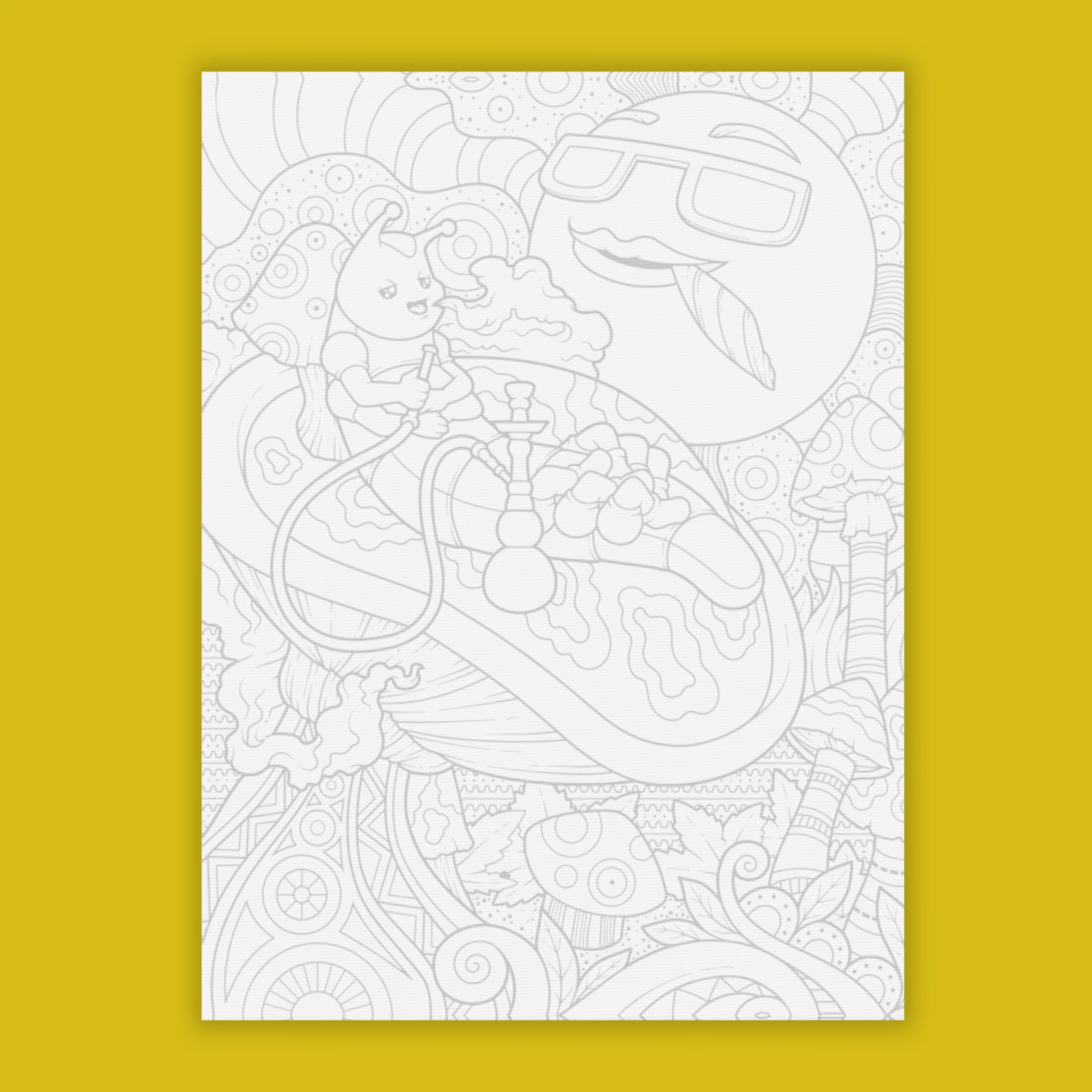 The catepillar and sun are enjoying a smoke on this cotton panel canvas for you to paint!