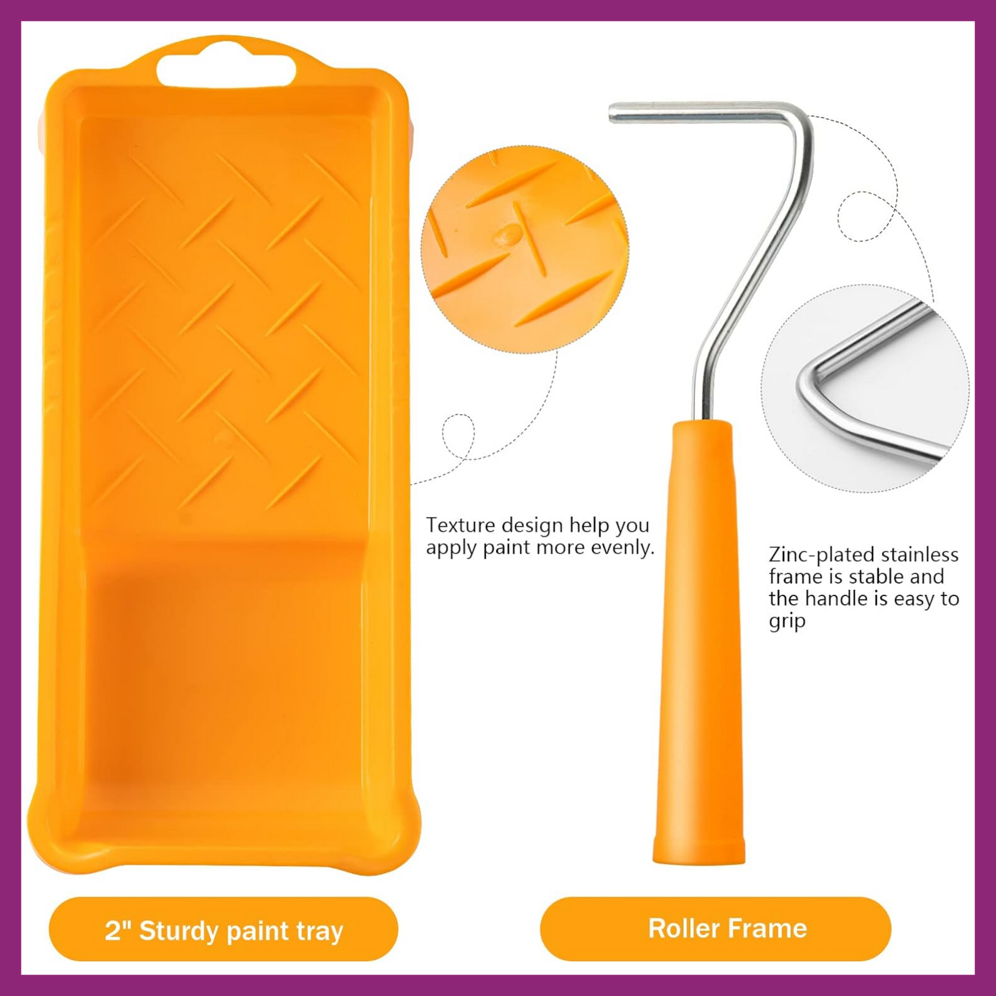 - Small Paint Roller Kit: includes 6 pcs 2 inch paint roller, a paint roller frame 2 inch, a 2 inch paint tray with a liner. Suitable for painting small and hard to reach spaces