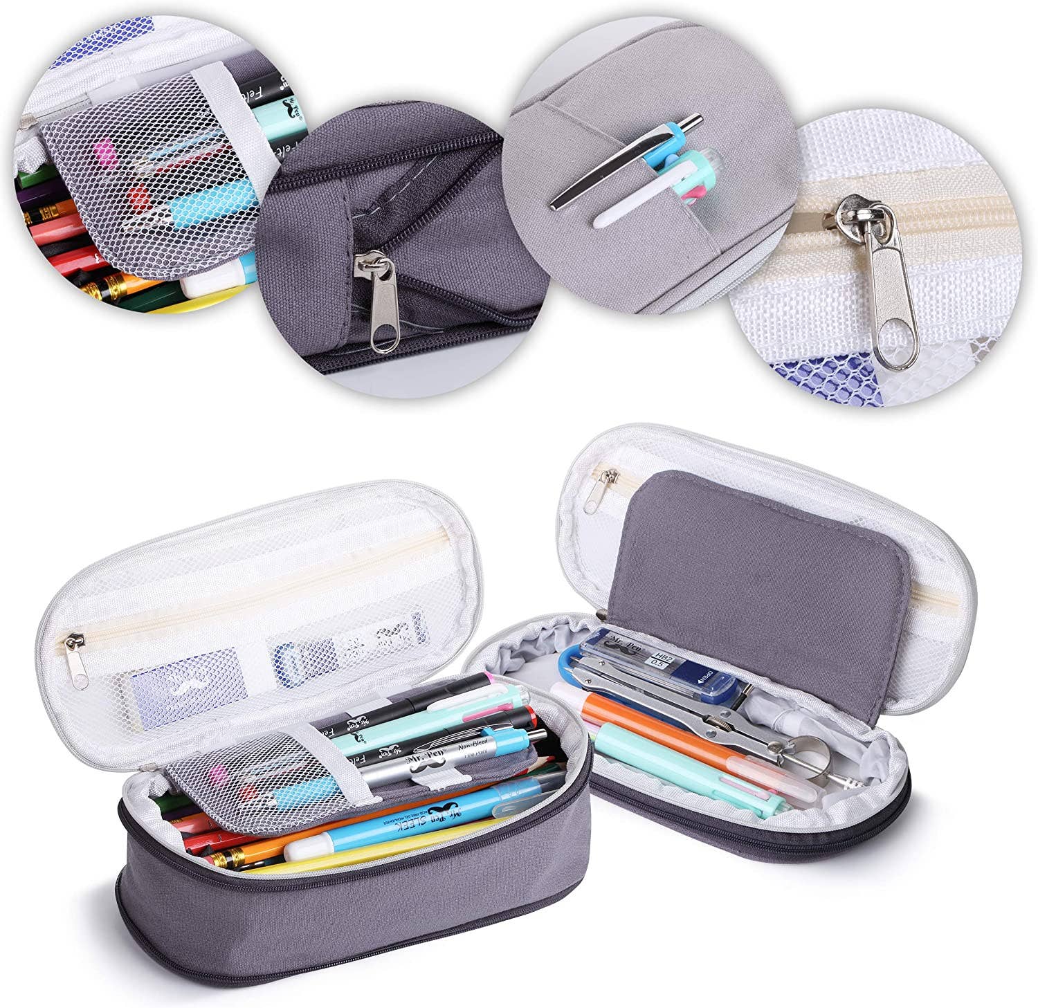 Includes: One Expandable Two-Zipper Pencil Bag In Light And Dark Gray