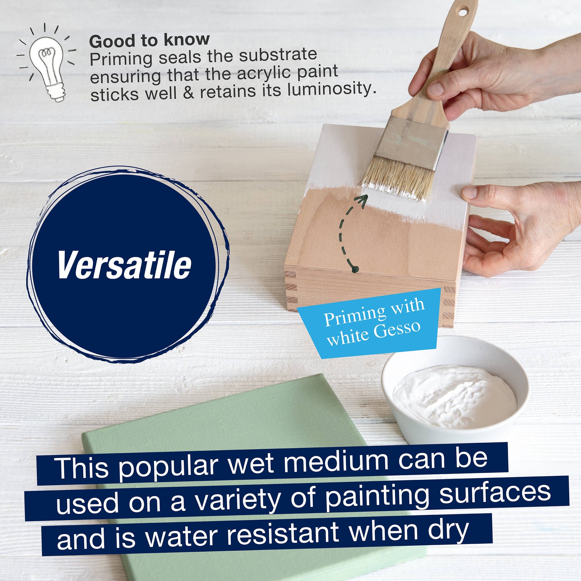 The intense, brilliant and mixable shades of the acrylic paint can be used straight from the tubes or diluted with water.