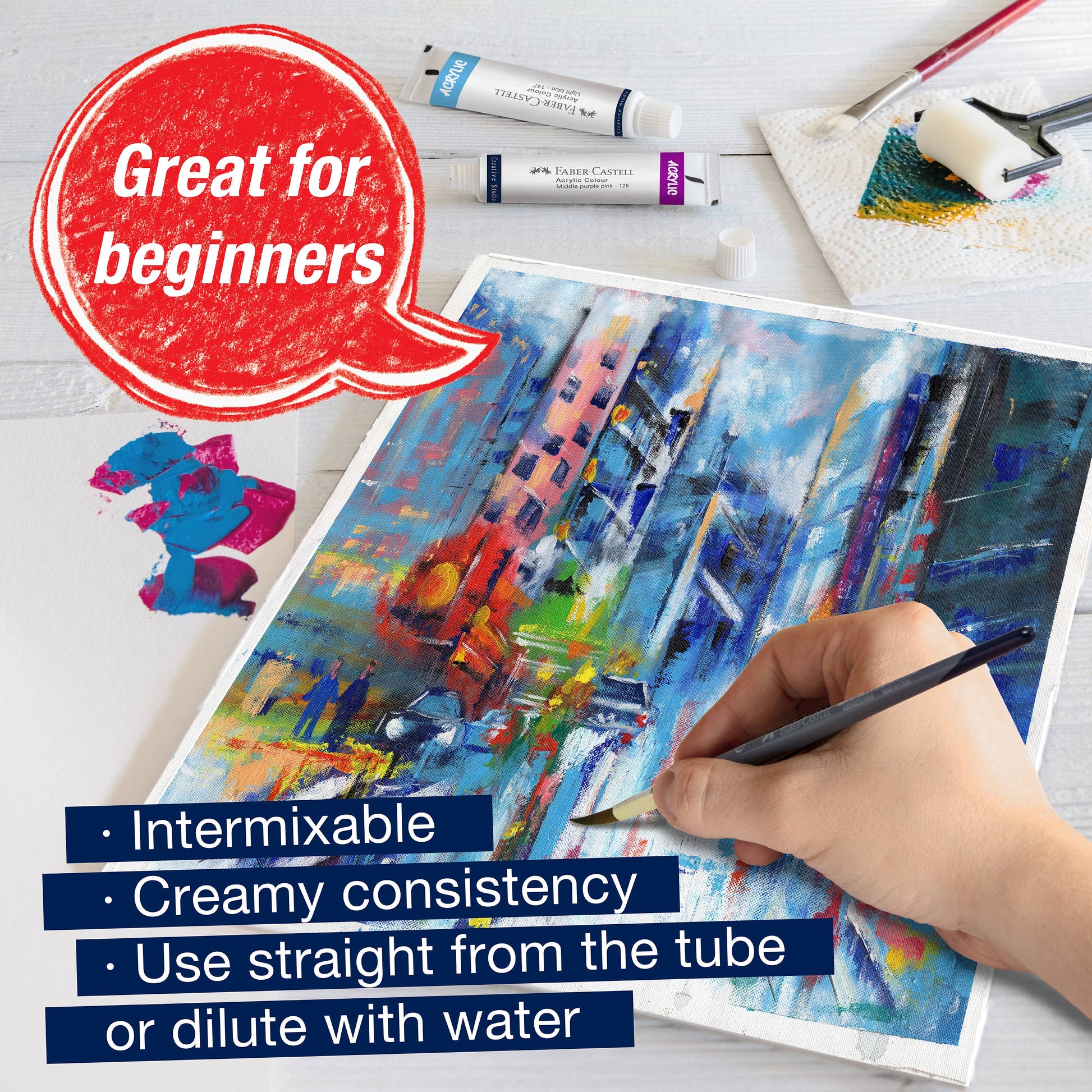 Premium quality vibrant acrylic paint from Faber-Castell has high brilliance, good lightfastness and is easily blendable.